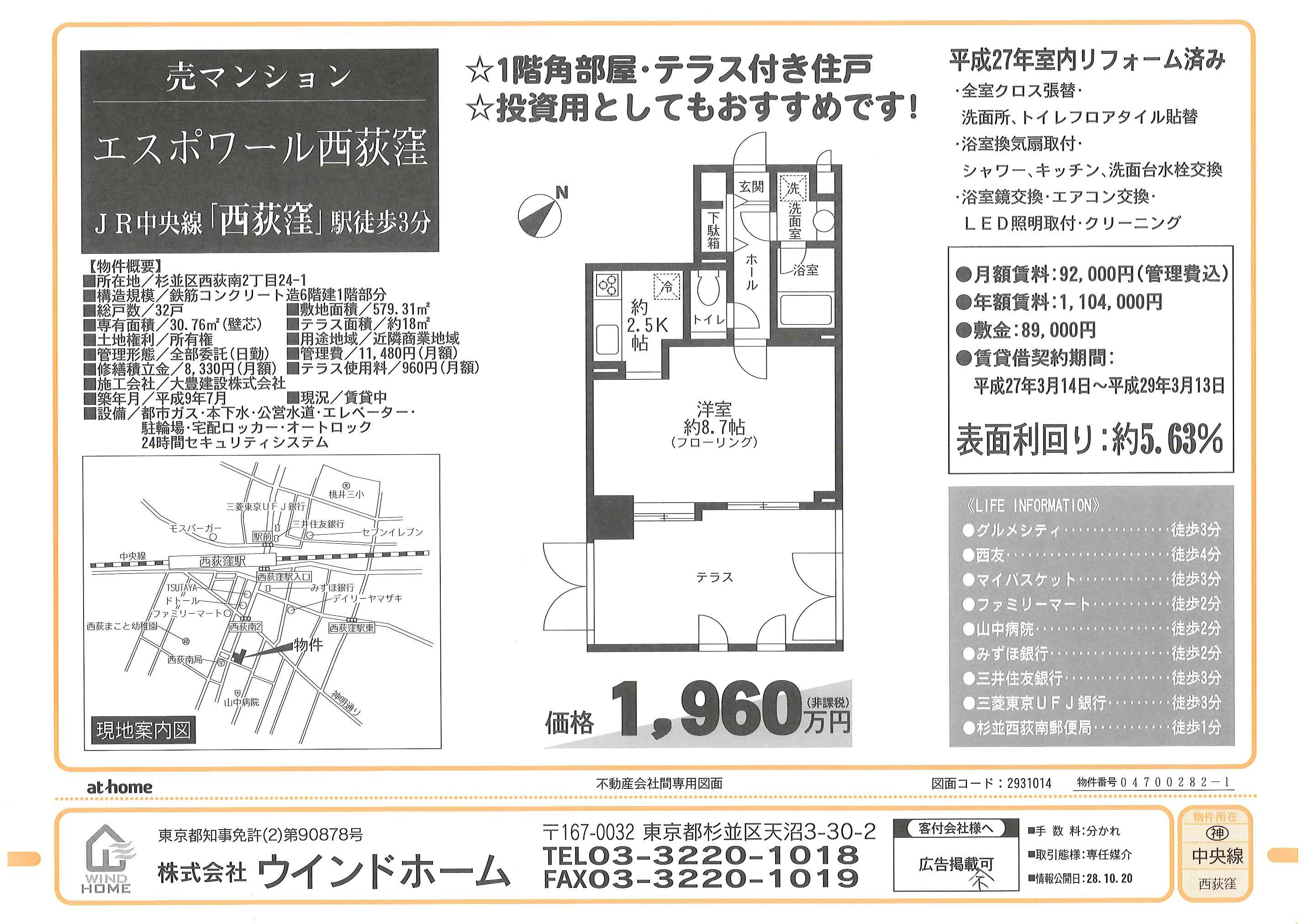 ウインドホームは荻窪・西荻窪周辺の賃貸マンション アパート情報をお届けしています、荻窪でお部屋をお探しの方はぜひ地元荻窪のウインドホームまでお問合せください。